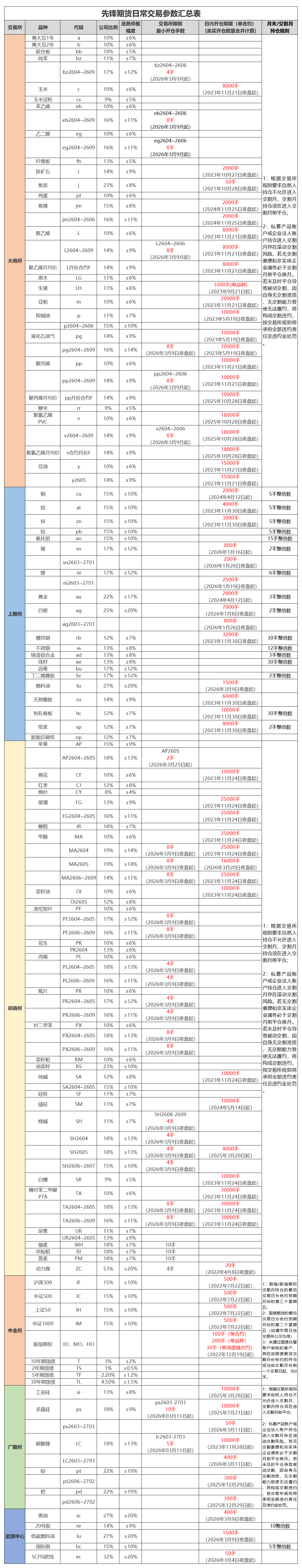 2026年3月26日:结算时起,sc,lu2604期货合约调整为20%(我司25%)