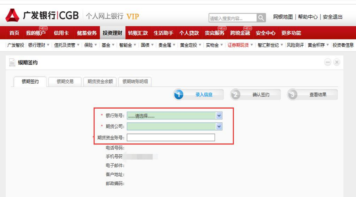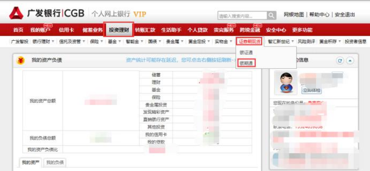 登录个人网上银行,点击投资理财-证券期现货-银期通