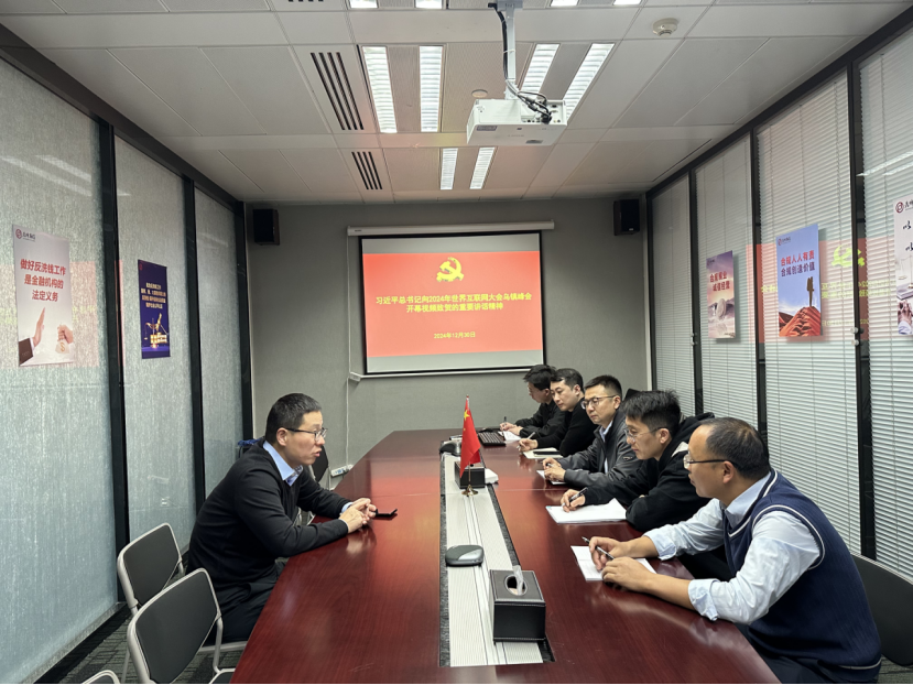 首先,会议进行“第一议题”学习,由支部书记李俊伟同志领学《习近平总书记向2024年世界互联网大会乌镇峰会开幕视频致贺的重要讲话精神》。为响应讲话中提出的“把握数字化、网络化、智能化发展大势,把创新作为第一动力、把安全作为底线要求、把普惠作为价值追求,加快推动网络空间创新发展、安全发展、普惠发展,携手迈进更加美好的‘数字未来’”,李俊伟表示,近几年期货金融服务借助互联网发展迅猛,总书记此次着重强调互联网发展的创新、安全与普惠,我们期货公司更应该加强技术安全保障和风险防范措施,保障客户资金安全,同时依托互联网打破物理限制,通过网上开户、直播投教、短视频推广等方式,扩大期货金融服务覆盖面,推动普惠金融发展。