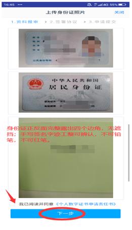 (2)上传身份证正面、反面和签名照等图片,上传的照片必须是近距离拍摄、画面清楚的,否则会影响到后面获取客户资料的流程。