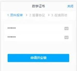 (8)视频完成后,进入安装数字证书界面,此处设置的密码一定要记住,在之后的流程中会用到验证证书的密码。否则,只能删除本地证书文件,重新视频验证、安装证书才可通过。