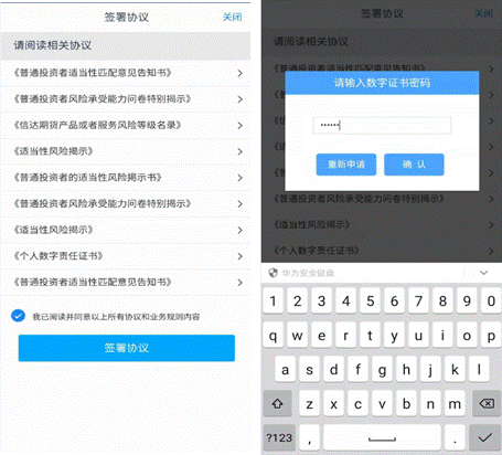 (9)进入签署协议界面,客户必须仔细阅读并同意后方可进行下一步。